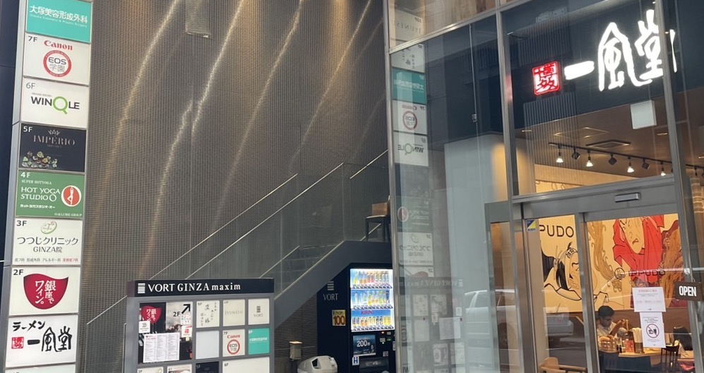 その1つ先のビルの4Fです。(1Fに一風堂が入っているビルの4Fです)